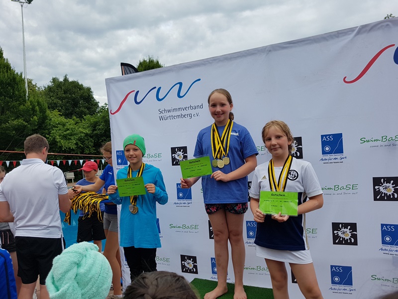 Bei den Württembergischen Jahrgangsmeisterschaften der E- und D-Jugend im Freibad Böblingen gingen 15 junge Wasserfreunde an den Start und schwammen zahlreiche neue persönliche Bestzeiten. Alexandra Maier war auf den Rückenstrecken sehr flott unterwegs, was ihr zwei erste Plätze auf 100m Rücken und 50m Rückenbeine und einen zweiten Platz über 50m Rücken einbrachte. Somit wurde sie in der Rückenkombiwertung ebenfalls Erste und sicherte sich das dritte Jahr in Folge den Titel. Jakob Ritschek mit einer neuer persönlichen Bestzeit holte Gold über 50m Schmetterling. Danijela Jagic gewann Silber über 50m Rücken und Annica Lauterbach durfte sich ebenfalls über eine Silbermedaille über 50m Kraulbeine. Zwei dritte Plätze konnte die 4x100m Freistil Staffel mit Danijela Jagic, Annica Lauterbach, Vera Luhmann und Sophie Widmaier und die 4x100m Lagen Staffel in derselben Besetzung gewinnen. Herzlichen Glückwunsch!